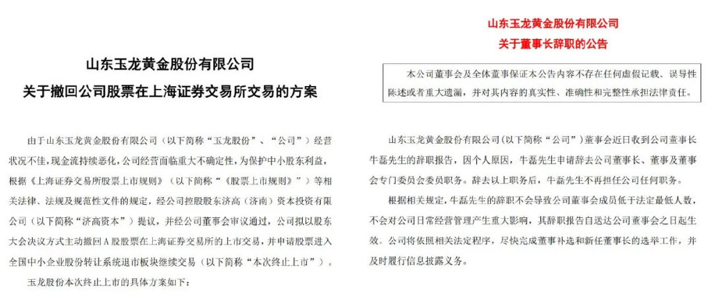 玉龙股份公告则称,“公司因多起诉讼、仲裁纠纷,导致核心资产被冻结,公司债务风险加剧,给公司未来治理和生产经营带来重大不确定性。”